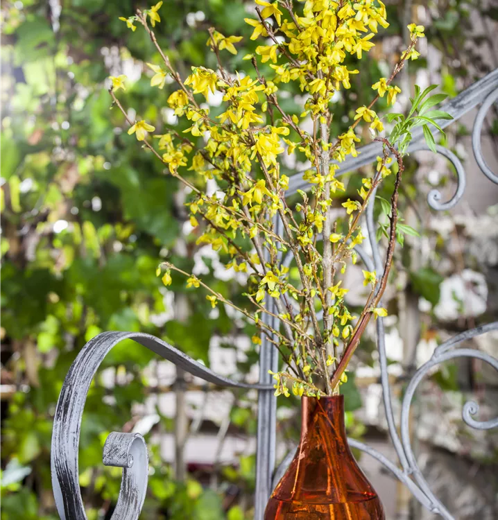 Die gelben Blüten der Forsythie erscheinen in Rispen von März bis Mai.