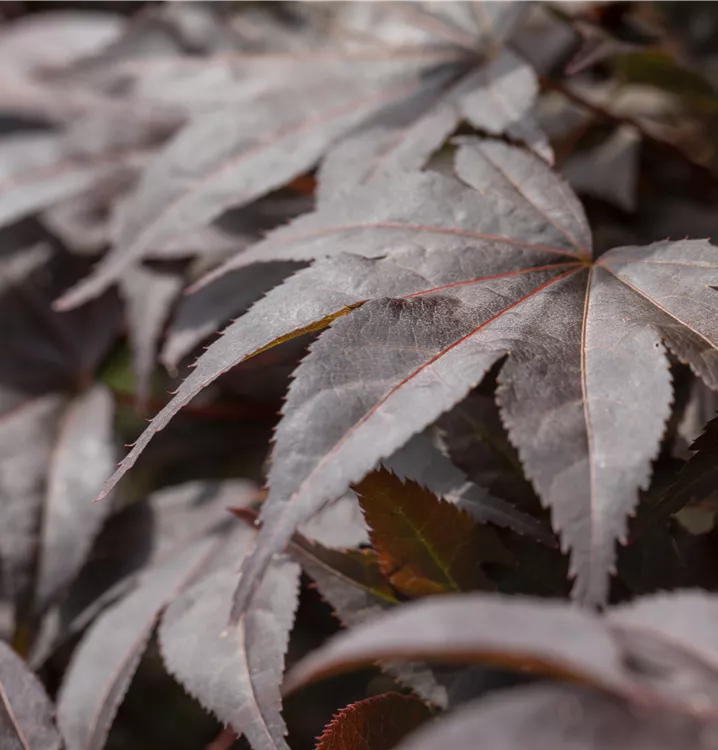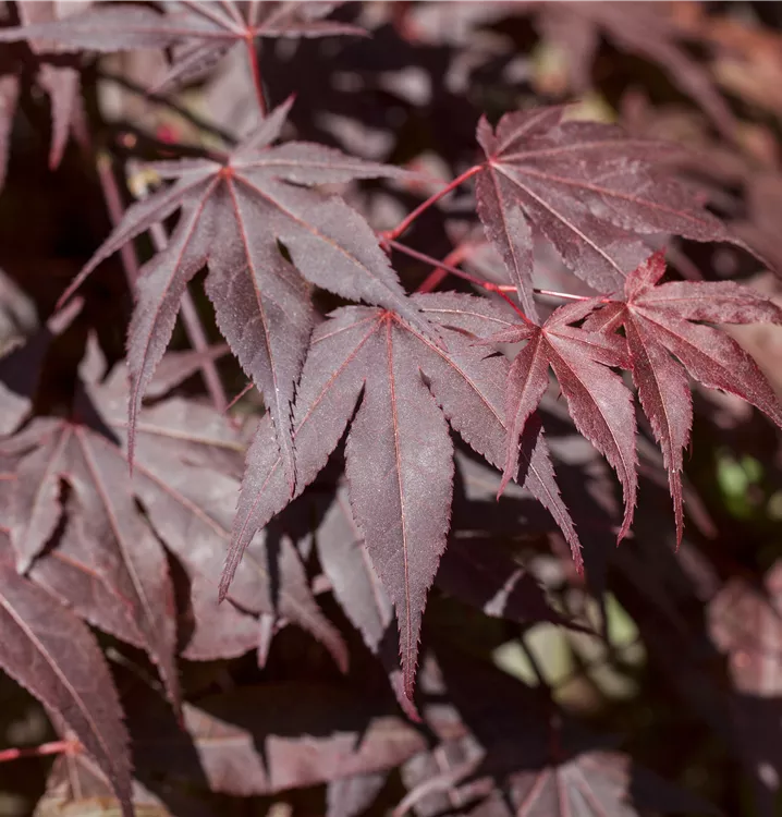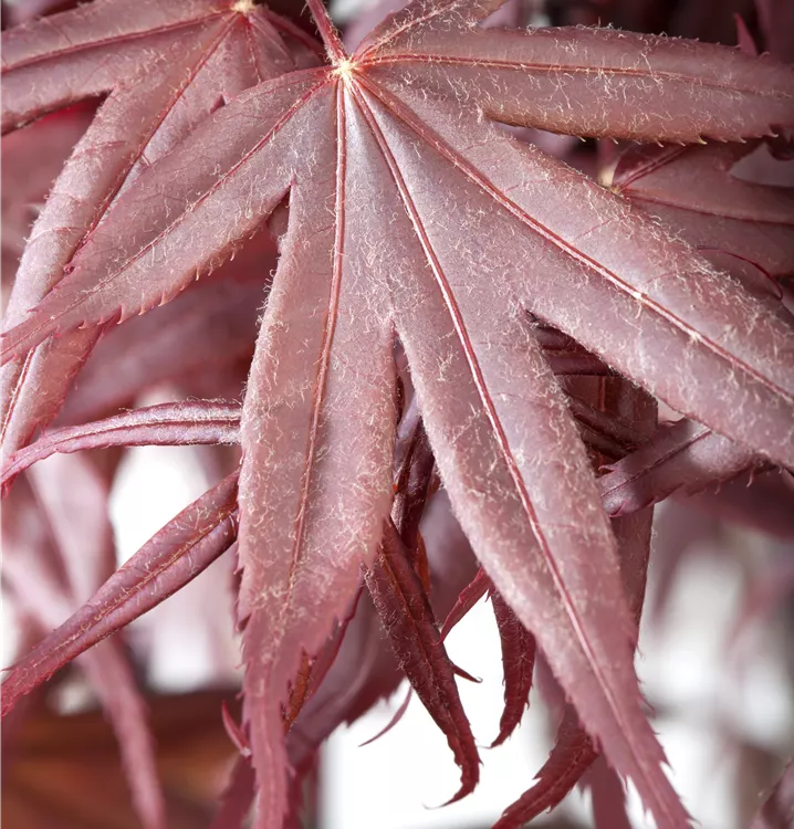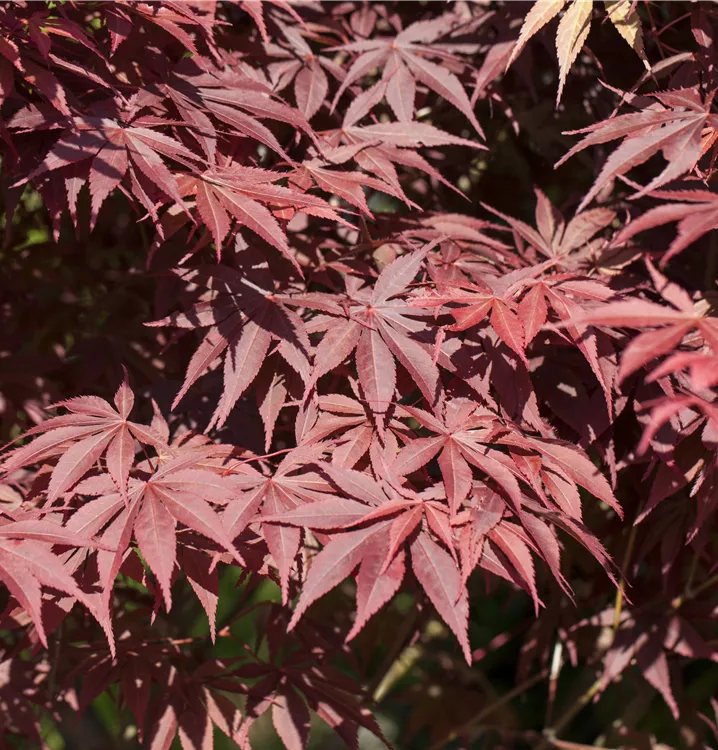 Acer palmatum 'Bloodgood' ist ein Flachwurzler und bildet, je nach Boden, fein verzweigte Wurzeln.