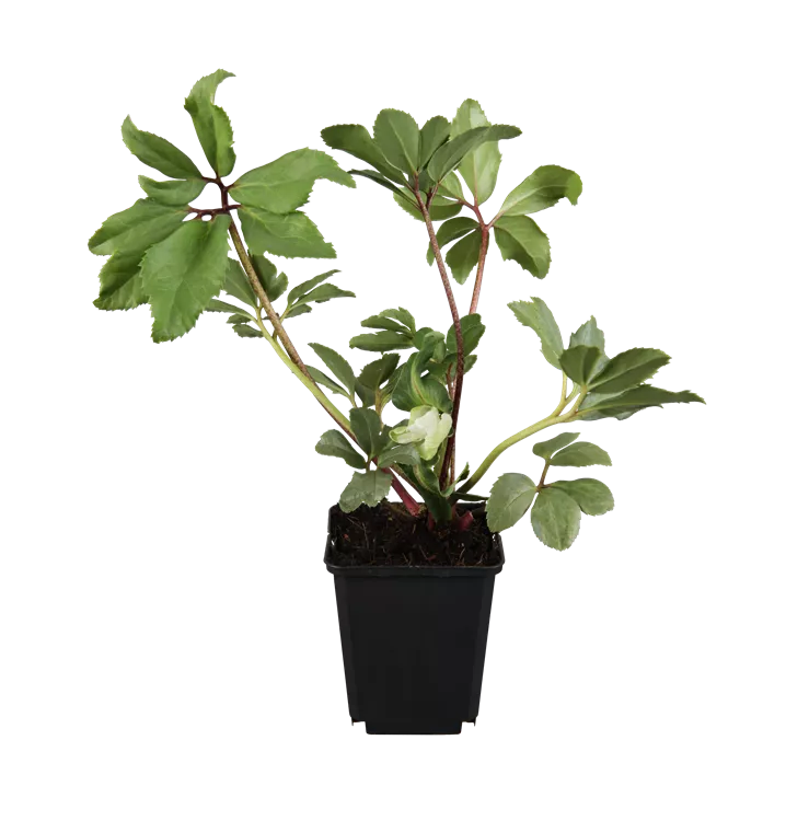 Die wintergrünen Blätter der Christrose sind dunkelgrün, lanzettlich.