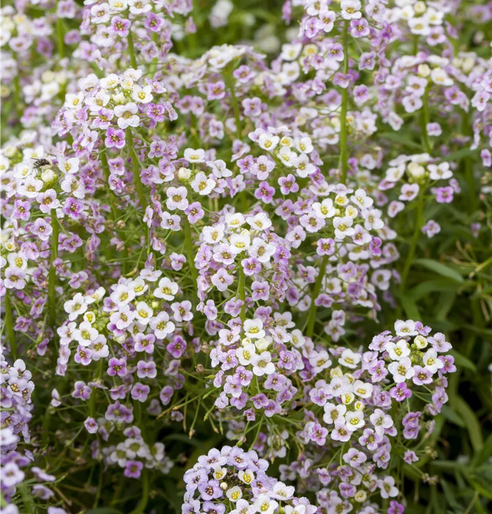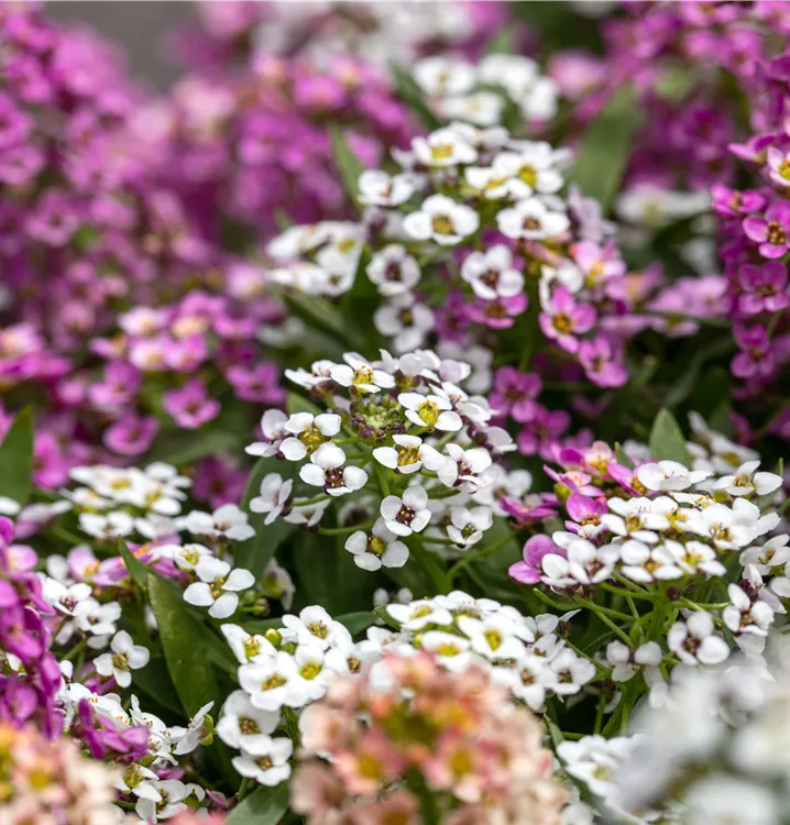 Das Strand-Silberkraut (Lobularia maritima) ist eine beliebte Pflanze für den Balkon, die während der gesamten Saison unzählige weiße, angenehm duftende Blüten bildet. Ein sonniger bis halbschattiger Standort und ein durchlässiges Substrat werden bevorzugt. Mit seinem dichten Wuchs passt das Strand-Silberkraut besonders gut in Blumenampeln und hängende Pflanzkörbe.