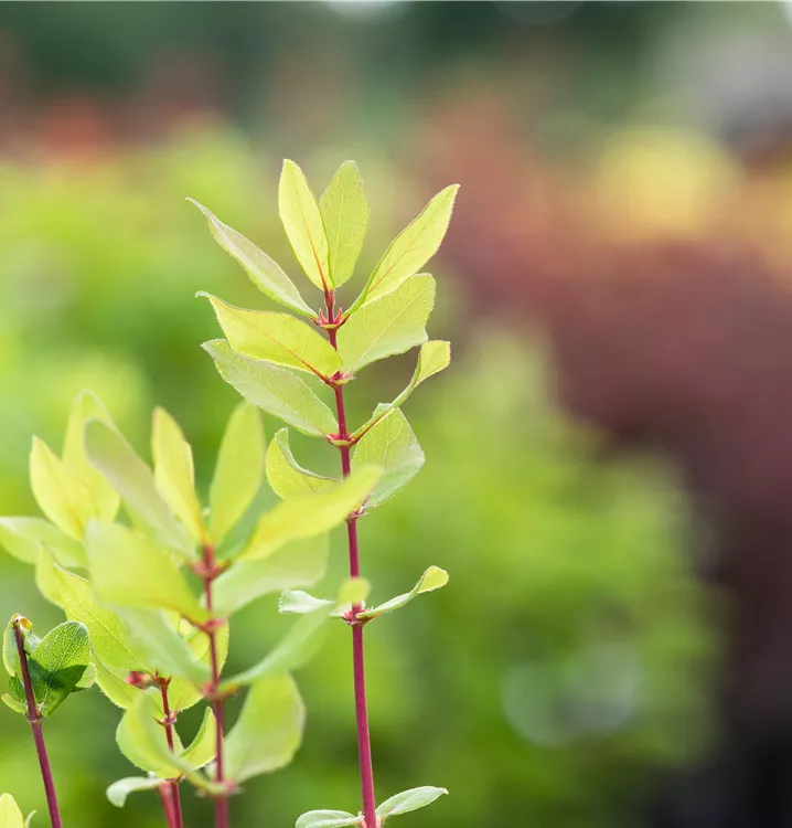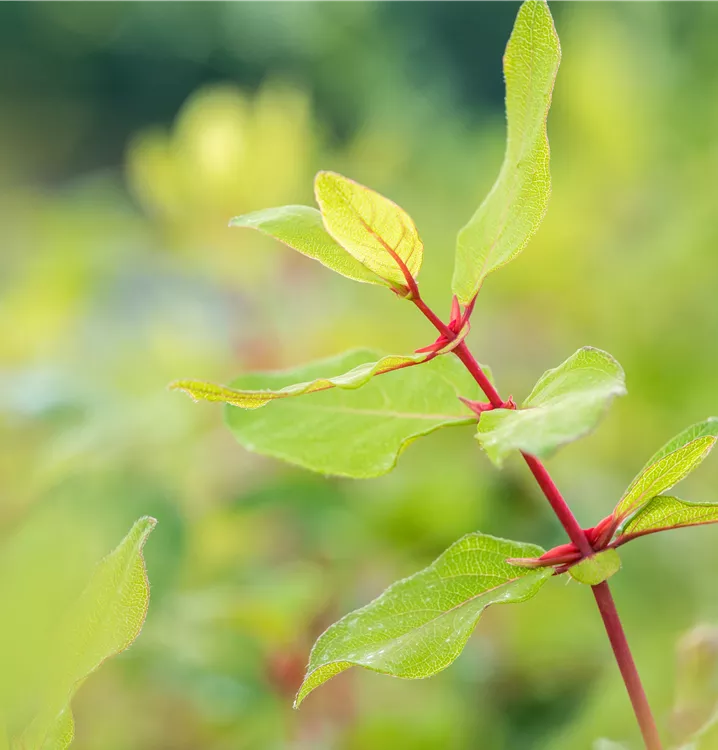 Die sommergrünen Blätter der Blaue Heckenkirsche sind grau-grün, lanzettlich.