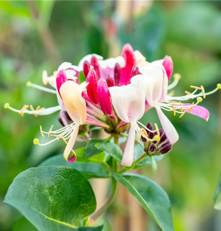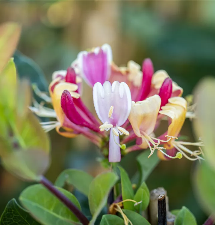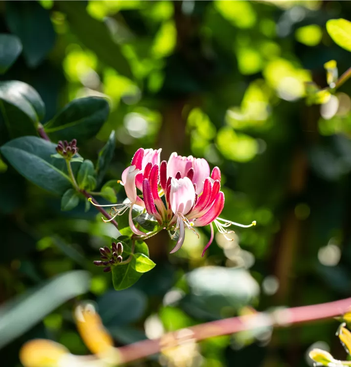 Die Triebe von Lonicera heckrottii sind purpurrot.