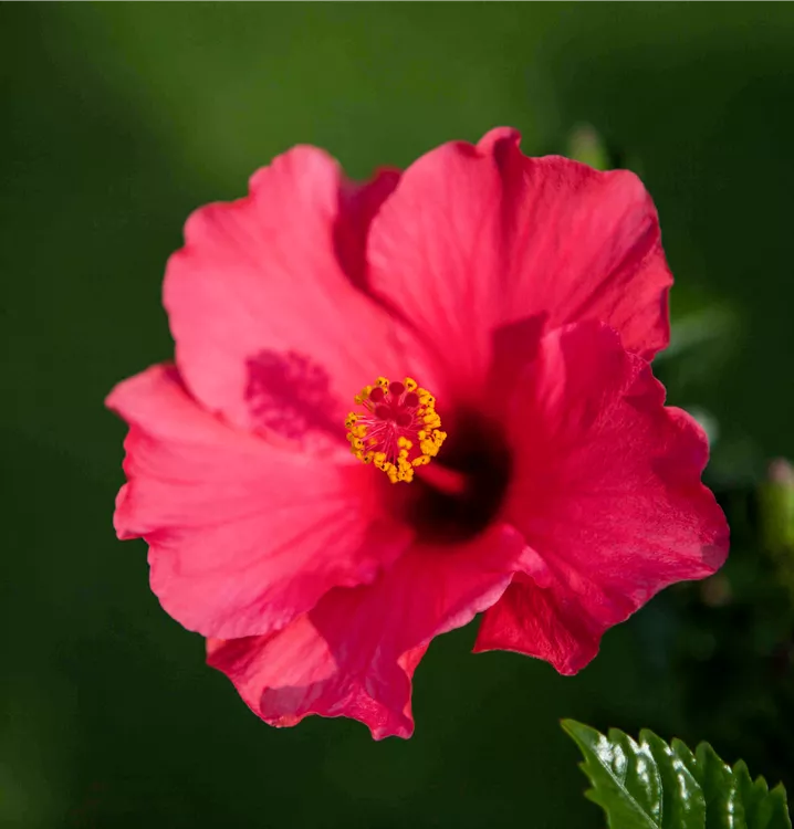 Die immergrünen Blätter des Chinesischen Roseneibischs sind dunkelgrün, eiförmig, gezähnt. Diese sind etwa 4 - 9 cm groß.