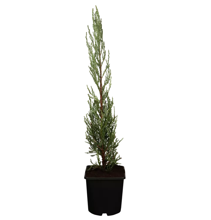 Virginischer Wacholder 'Blue Arrow' ist ein säulenförmig und schlank wachsender Großstrauch. Er erreicht gewöhnlich eine Höhe von 4 - 5 m und wird ca. 0,7 - 1 m breit. In der Regel wächst er 15 - 20 cm pro Jahr.