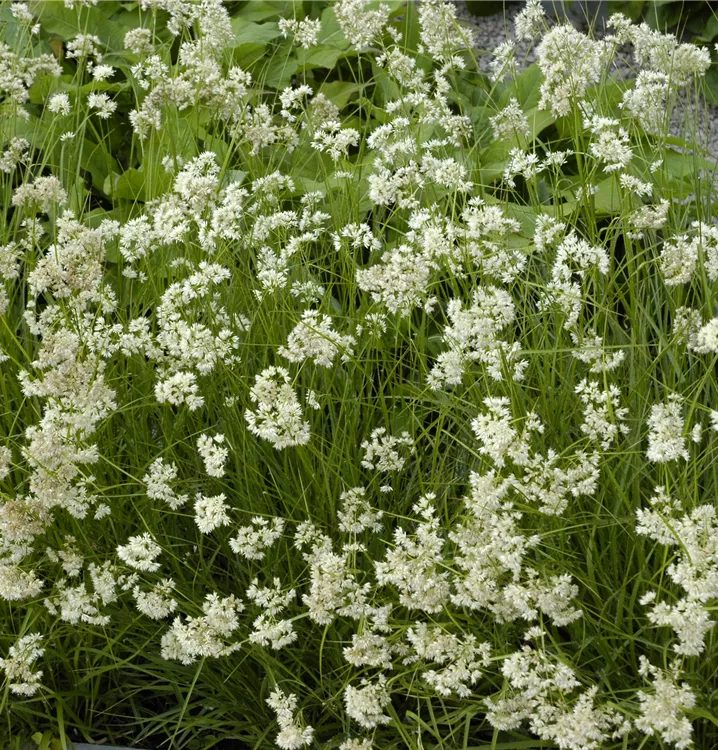 Die Schnee-Hainsimse (Luzula nivea) ist mit ihrer mittelgrünen Blattfärbung ein dekoratives Gestaltungselement im Garten, welches ebenso mit seinem buschigen, breiten und dichten Wuchs hervorsticht. Die weißen Blütendolden schmücken diese Gras ab Sommer. An einem halbschattigen Standort mit einem möglichst durchlässigen, humosen Boden fühlt sie sich am wohlsten. Bei günstigen Bedingungen erreicht dieses winterharte Gras eine Höhe von ca. 20 cm und wird bis zu 20 cm breit.