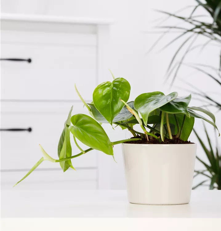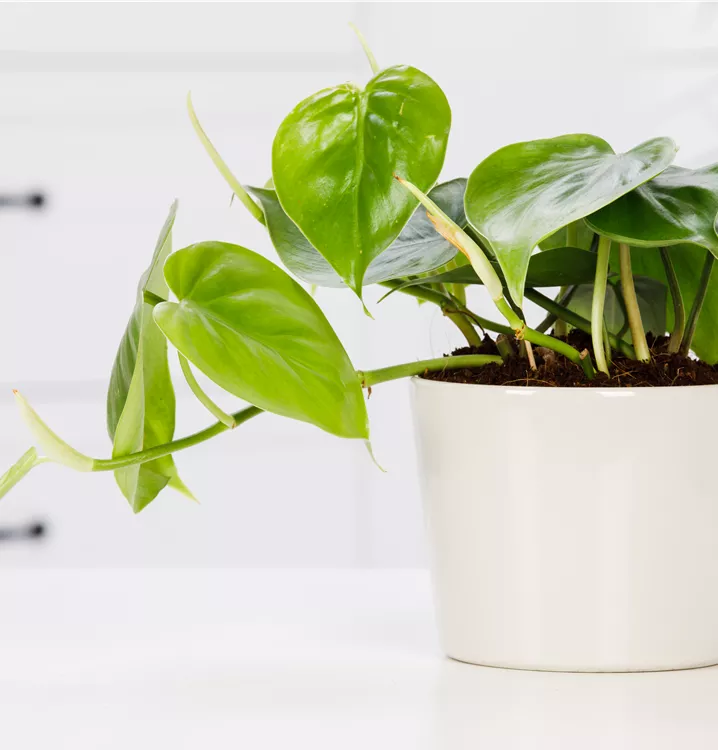 Die Blätter des Philodendrons sind dunkelgrün, herzförmig.