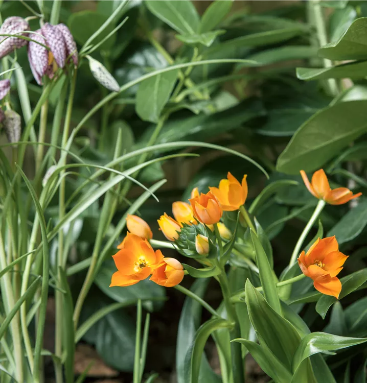 Der Milchstern (Ornithogalum dubium) bringt ansehnliche, orangefarbene, leicht duftende Blüten von Juli bis September hervor. Bevorzugt wird ein durchlässiger, lockerer Boden in sonniger Lage. Die aufrechte Pflanze erreicht gewöhnlich eine Höhe von 20 - 40 cm und wird bis zu 20 cm breit.
