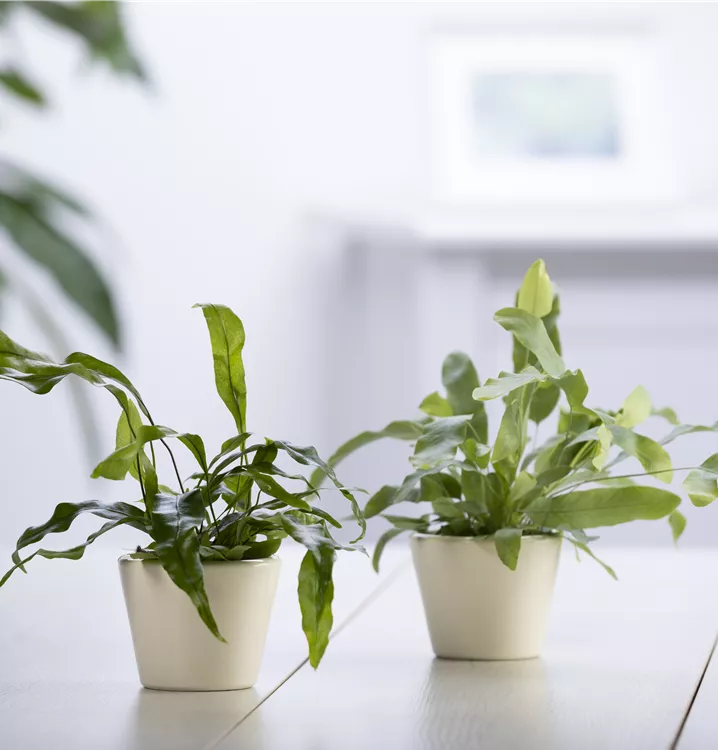 Der Goldene Hasenfußfarn (Phlebodium aureum) ist mit seinen gefingerten, dunkelgrünen Blattwedeln eine dekorative Zimmerpflanze. An einem hellen Standort un in einer humosen, lockeren Erde fühlt er sich am wohlsten. Bei günstigen Bedingungen erreicht dieser Farn eine Höhe von ca. 40 cm und wird bis zu 80 cm breit.