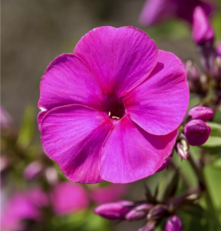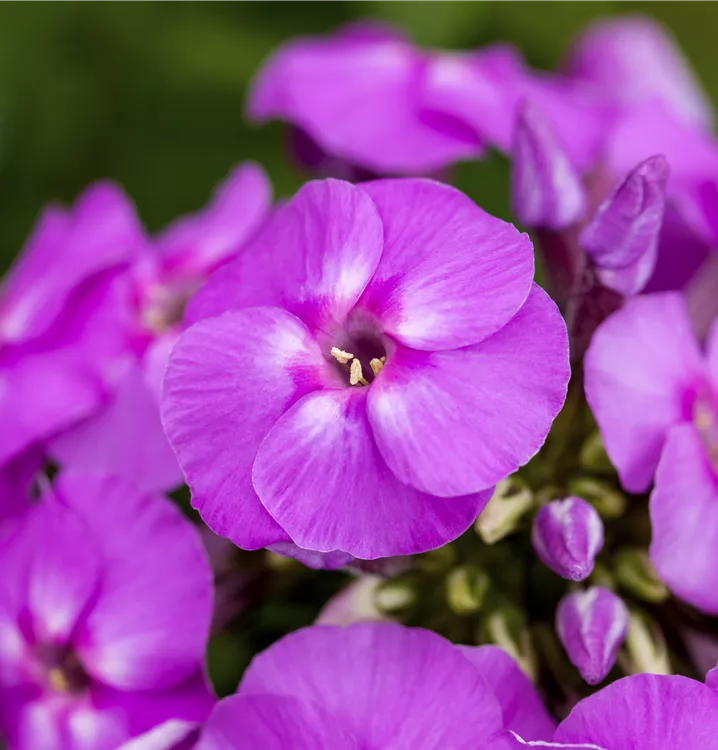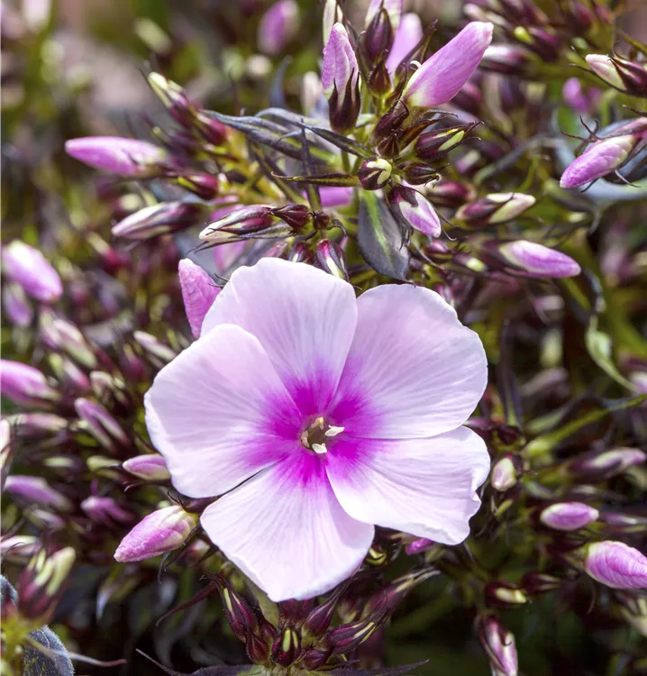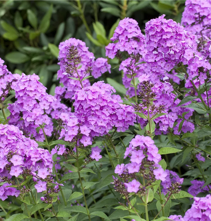 Phlox paniculata bildet in Dolden angeordnete, violette, rosafarbene, weiße Blüten ab Juli. Diese verströmen einen leichten Duft.