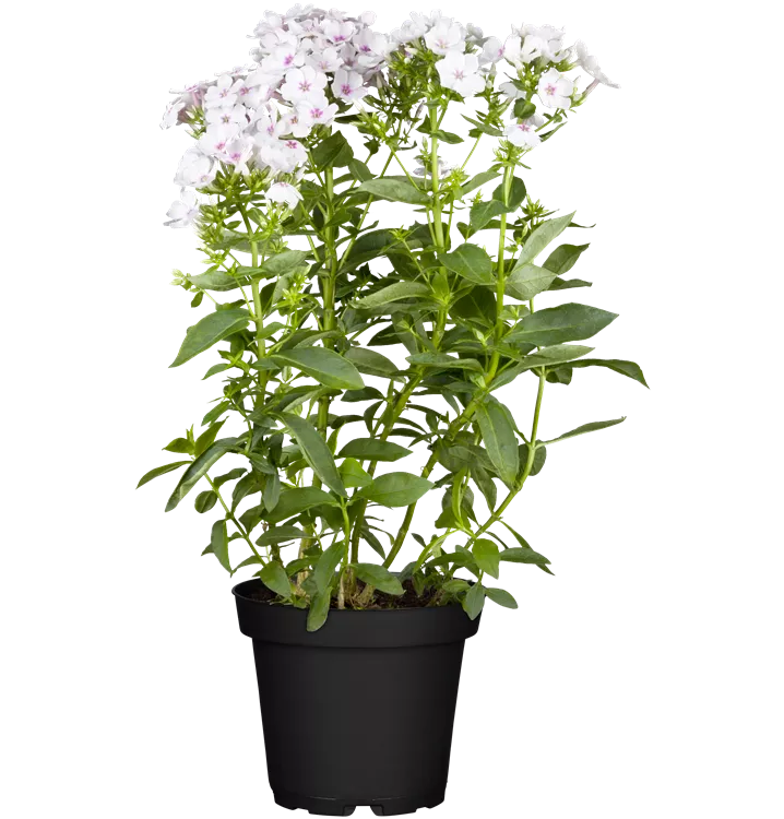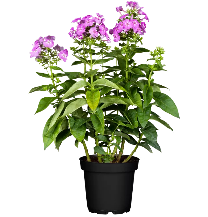 Die Hohe Flammenblume (Phlox paniculata) ist eine aufrechte Staude, die von Juli bis September violette, rosafarbene oder weiße, in Dolden angeordnete Blüten mit einem leichten Duft bildet. Ihre lanzettlichen, Blätter sind mittelgrün. An einem sonnigen bis halbschattigen Standort mit durchlässigem, nährstoffreichem Boden erreicht sie gewöhnlich eine Höhe von ca. 1,2 m und wird ca. 60 cm breit. Die Hohe Flammenblume ist gut frostverträglich.