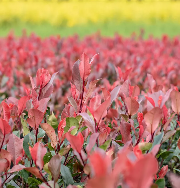 Photinia fraseri 'Little Red Robin' ist ein Flachwurzler und bildet, je nach Boden, fein verzweigte Wurzeln.