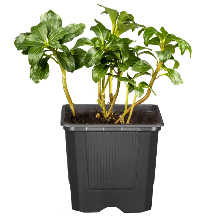 Pachysandra terminalis 'Green Sheen'® ist ein Flachwurzler und bildet, je nach Boden, ausladend verzweigte Wurzeln.