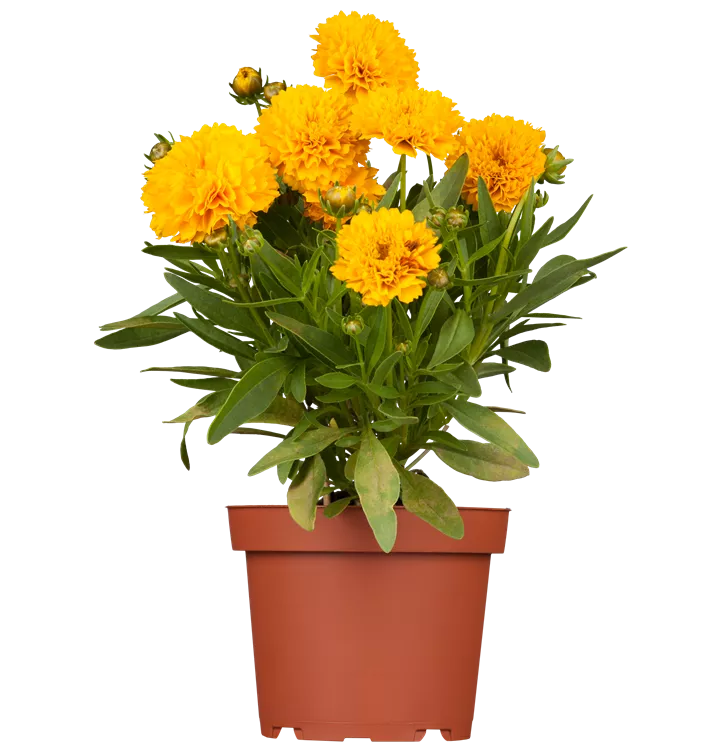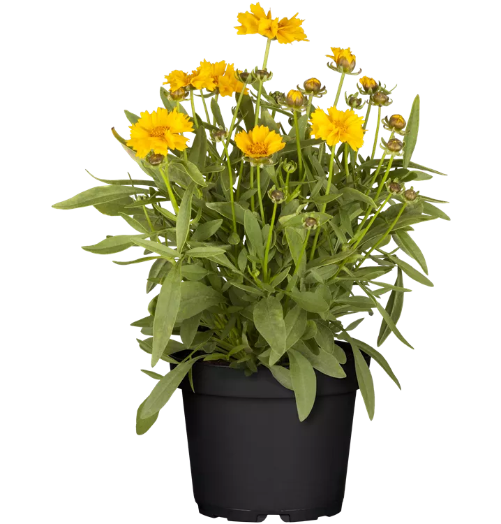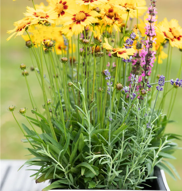Coreopsis grandiflora bildet körbchenartige, goldgelbe Blüten ab Juni.