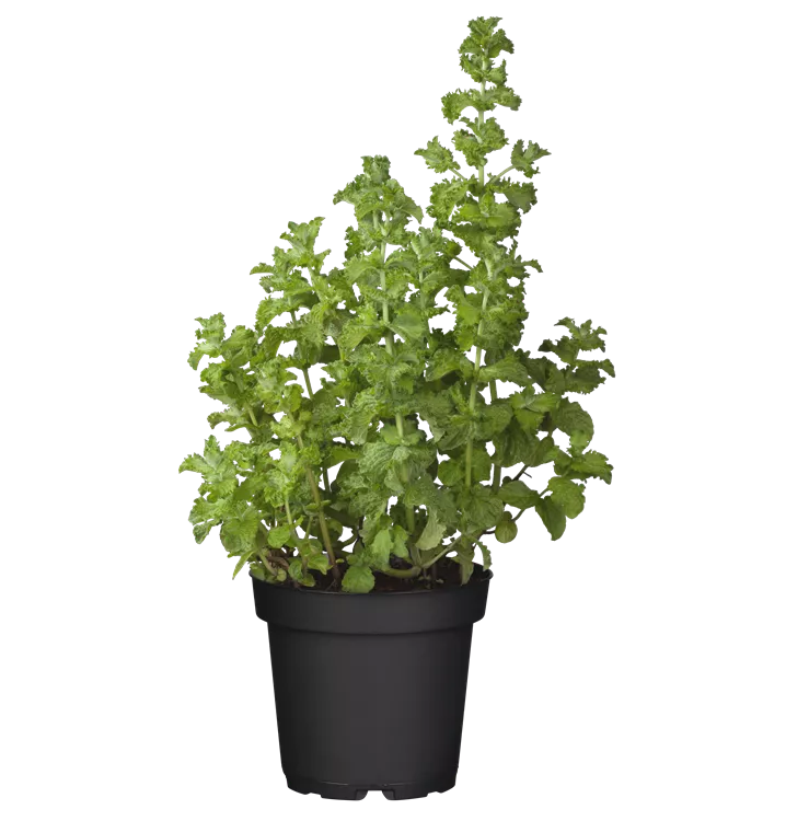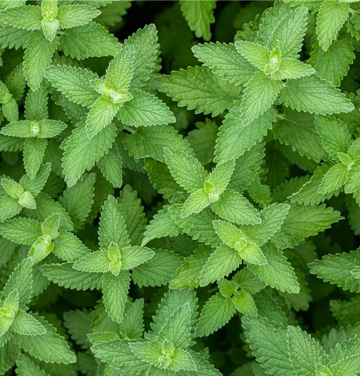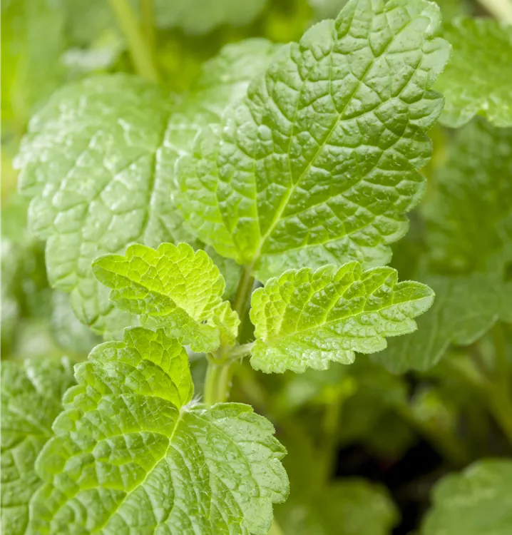 Zum Verzehr geeignet. Die mittelgrünen, gezähnten Blätter sind eiförmig und überzeugen mit erfrischendem Geschmack.