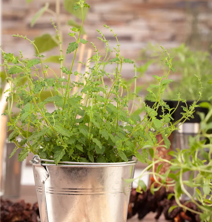 Die Minze (Mentha species) ist eine Kräuterpflanze mit einem erfrischenden Geschmack. Ihre mittelgrünen Blätter sind eiförmig und gezähnt. Für das optimale Wachstum der Minze werden ein sonniger Standort und durchlässiger, nährstoffreicher Boden benötigt.