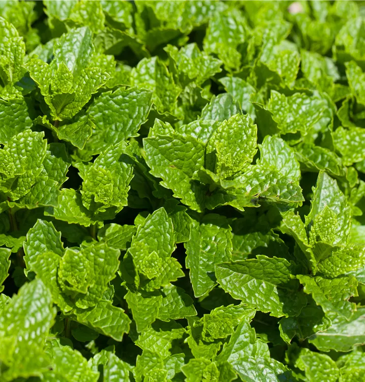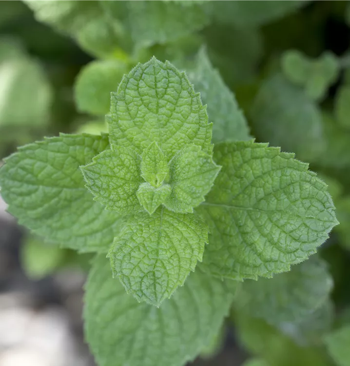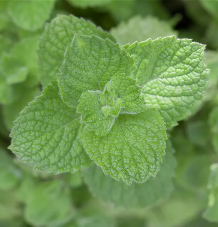 Zum Verzehr geeignet. Die hellgrünen, gezähnten Blätter sind eiförmig, lanzettlich und überzeugen mit erfrischendem, aromatischem, minzigem Geschmack.
