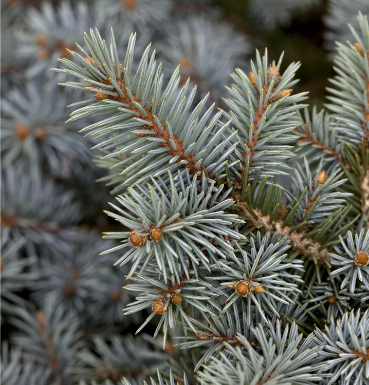 Die Stechfichte (Picea pungens) ist ein Baum, welcher kegelförmig wächst und gewöhnlich eine Höhe von ca. 20 m und eine Breite von ca. 8 m erreicht. Ihre nadelförmigen Blätter haben eine blau-grüne Färbung. Dekorative hellbraune Zapfen zieren Picea pungens ab September. Dieses Gehölz ist gut frostverträglich.Sie bevorzugt durchlässigen Boden in sonniger Lage.
