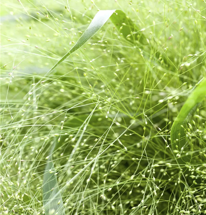 Die grünen Blüten der Ruten-Hirse erscheinen in Rispen von Juli bis September.