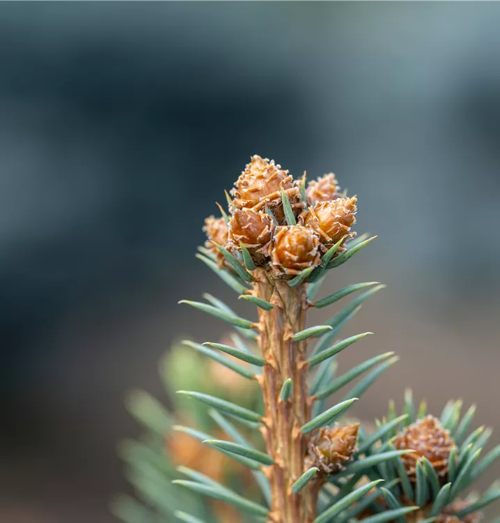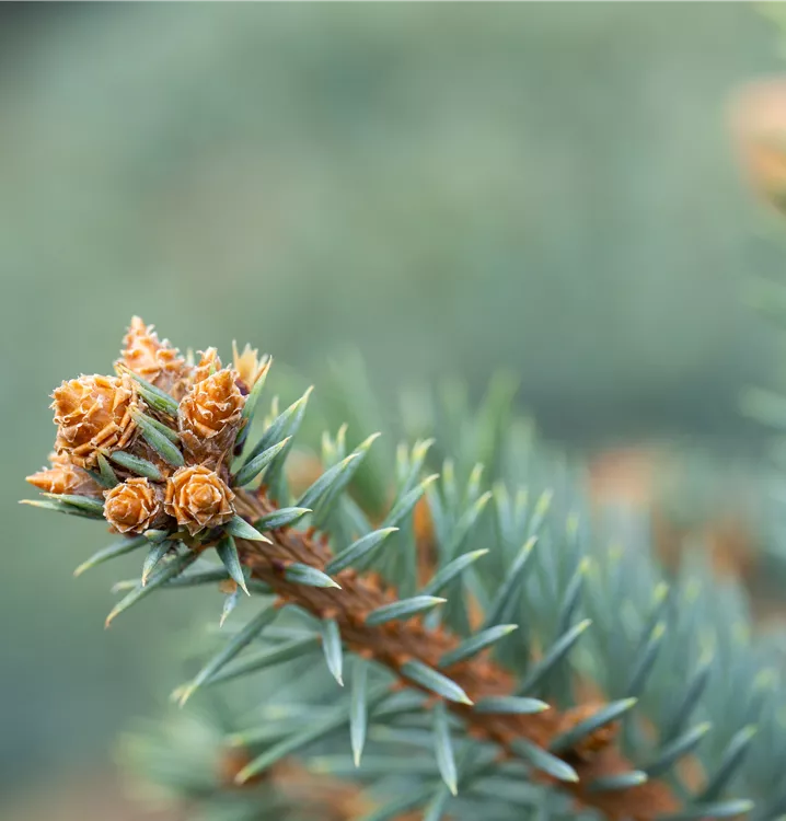 Besonders dekorativ sind die hellbraunen, zylindrischen Zapfen von Picea pungens 'Glauca'. Diese erscheinen ab September.