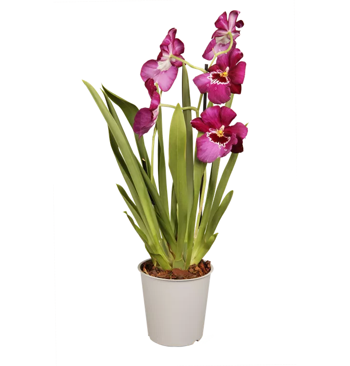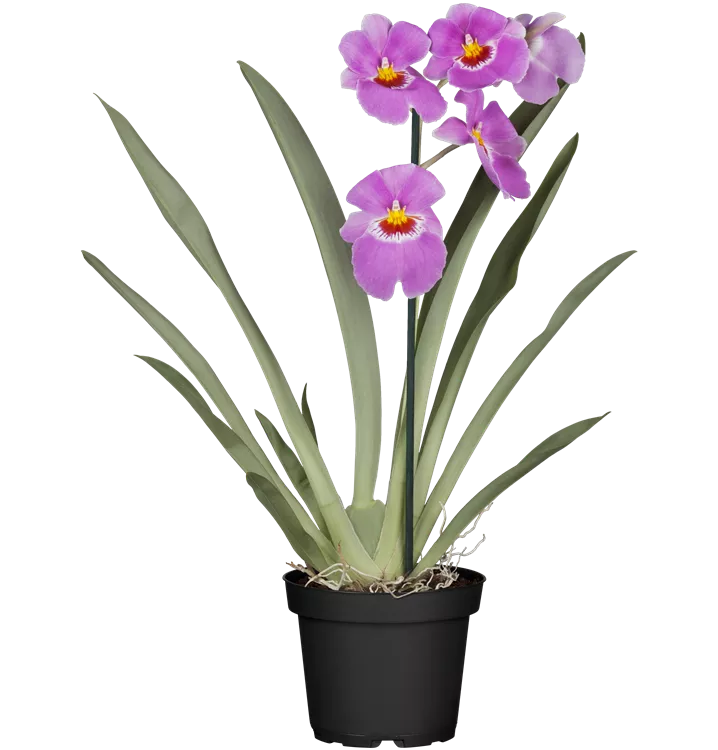 Miltonia bringt von März bis Mai dekorative, lippenförmige, mehrfarbige Blüten hervor. Diese verströmen einen leichten Duft. Bei richtiger Pflege Nachblüte von September bis November.