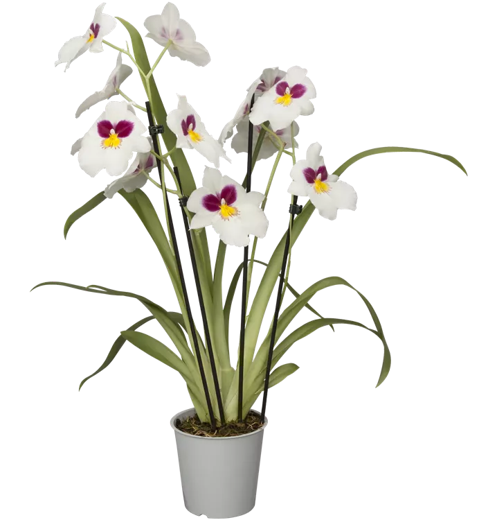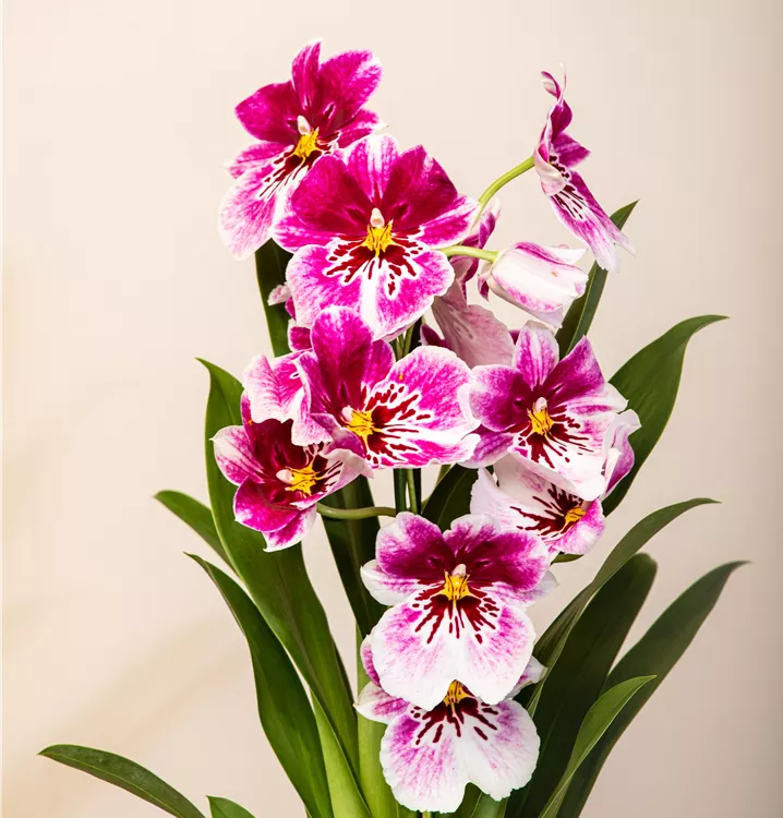 Die Miltonie (Miltonia) ist eine schöne, in mehrfarbig blühende Orchidee, deren natürliche Form in Brasilien beheimatet ist. Ihre lippenförmigen Blüten verströmen einen leichten Duft und erscheinen von März bis Mai. Mit ihrem aufrechten Wuchs wird sie bis zu 70 cm hoch und 40 cm breit. Für das optimale Wachstum sorgen ein halbschattiger Standort sowie eine möglichst durchlässige und lockere Erde.