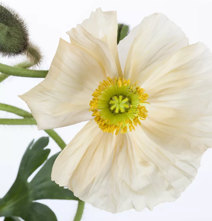 Die sommergrünen Blätter des Island-Mohns sind blau-grün, gefiedert.