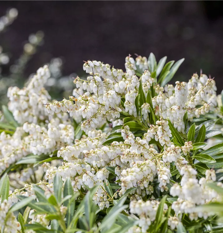 Das Schattenglöckchen 'Cupido' (Pieris japonica) ist ein buschiger, breiter Kleinstrauch, der weiße, in Rispen angeordnete Blüten hervorbringt. Sie erscheinen von März bis Mai. Aus diesen gehen ab August hellbraune, runde Früchte hervor. Zudem trägt das Schattenglöckchen 'Cupido', glänzende, lanzettliche, dunkelgrüne Blätter. Seine Rinde ist rot-braun, streifenförmig eingerissen. An einem halbschattigen bis schattigen, windgeschützten Standort mit humosem, nährstoffreichem Boden erreicht es gewöhnlich eine Höhe von ca. 1 m und wird ca. 1,5 m breit.
