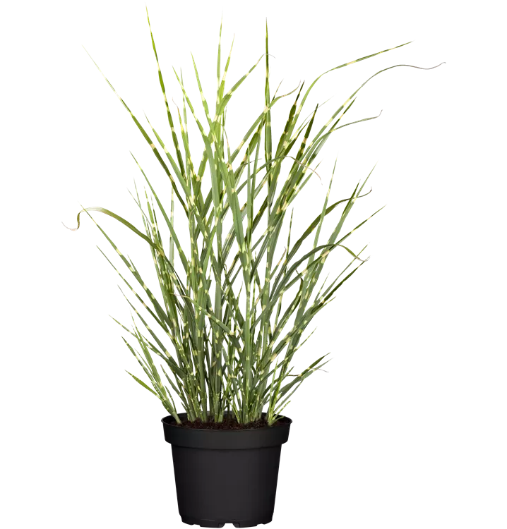 Das Garten-Chinaschilf 'Zebrinus' (Miscanthus sinensis) ist mit seiner gelb-grünen Blattfärbung ein dekoratives Gestaltungselement im Garten, welches ebenso mit seinem aufrechten und horstbildenden Wuchs hervorsticht. Die braunen Blütenrispen schmücken diese Gras ab Herbst. An einem sonnigen bis halbschattigen Standort mit einem möglichst durchlässigen, humosen, nährstoffreichen Boden fühlt es sich am wohlsten. Bei günstigen Bedingungen erreicht dieses winterharte Gras eine Höhe von ca. 1,6 m und wird bis zu 1,2 m breit.