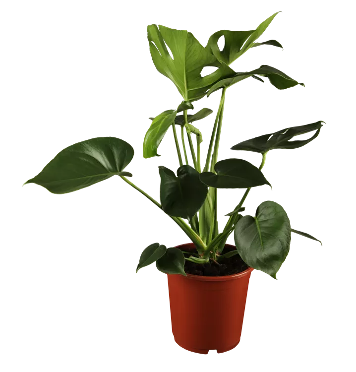 Hoher Blattschmuckwert. Die Blätter des Fensterblatts sind dunkelgrün, herzförmig, glänzend, löchrig, gebuchtet.