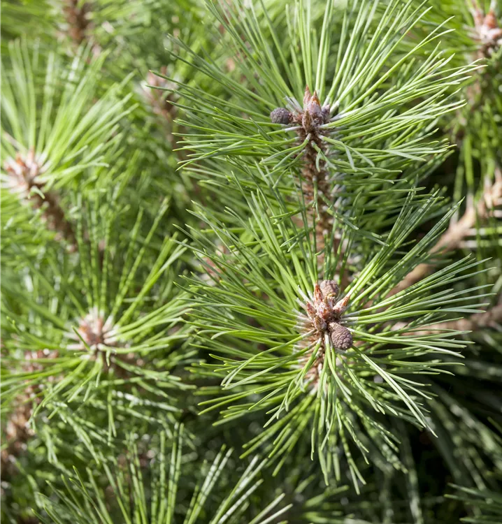 Die Kugelkiefer 'Pierrick Brégeon' (Pinus nigra) ist ein Kleinstrauch, welcher kompakt wächst und gewöhnlich eine Höhe von ca. 1,5 m und eine Breite von ca. 1,5 m erreicht. Ihre nadelförmigen Blätter haben eine dunkelgrüne Färbung. Dekorative braune Zapfen zieren Pinus nigra 'Pierrick Brégeon' ab September. Dieses Gehölz ist gut frostverträglich.Sie bevorzugt durchlässigen, kalkhaltigen, sandigen Boden in sonniger Lage.