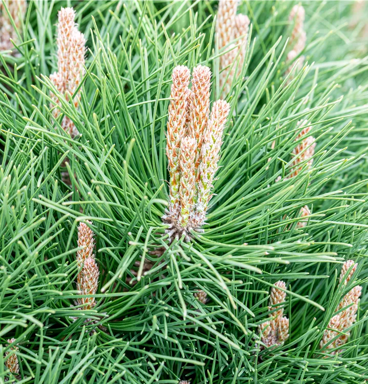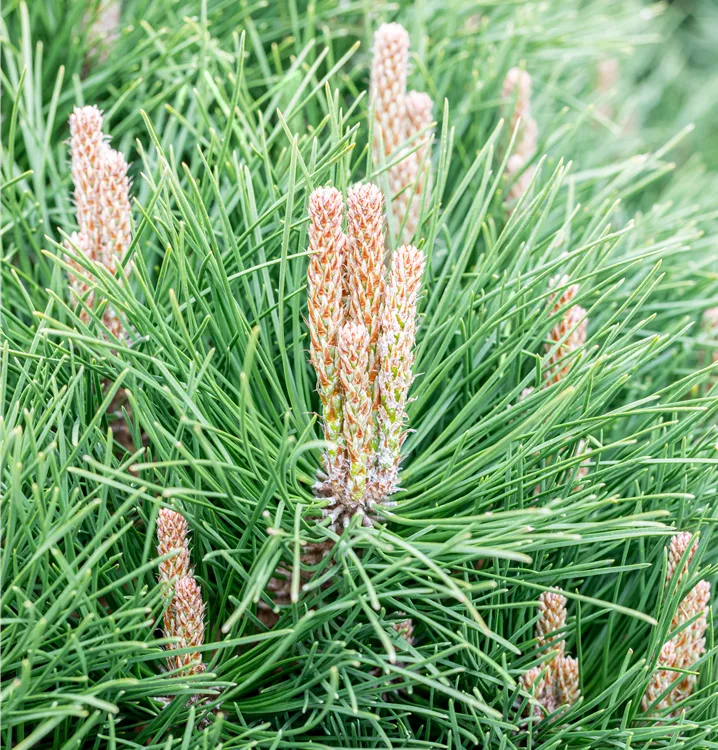 Kugelkiefer 'Pierrick Brégeon' ist ein kompakt wachsender Kleinstrauch mit geschlossener Krone. Sie erreicht gewöhnlich eine Höhe von 1 - 1,5 m und wird ca. 1 - 1,5 m breit.