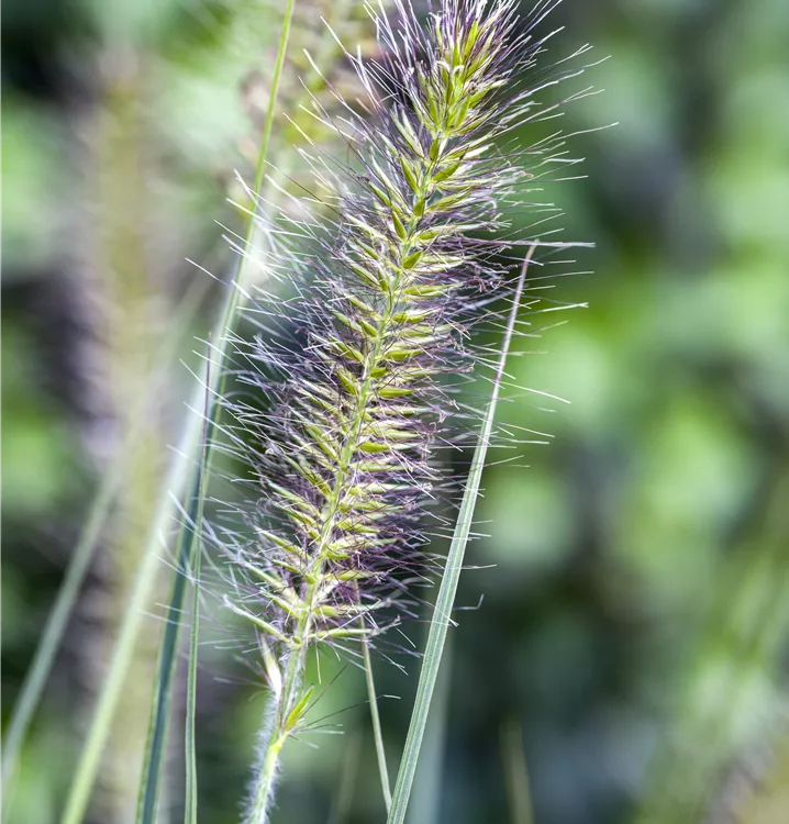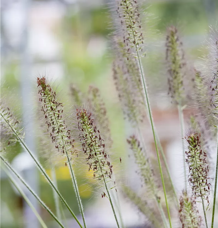 Das Garten-Federborstengras 'Hameln' (Pennisetum alopecuroides) ist mit seiner dunkelgrünen Blattfärbung ein dekoratives Gestaltungselement im Garten, welches mit seinem buschigen, aufrechten und horstbildenden Wuchs aber ebenso Kübel auf Balkon oder Terrasse ziert. Die goldgelben Blütenrispen schmücken diese Gras ab Sommer. An einem sonnigen Standort mit einem möglichst durchlässigen, nährstoffreichen Boden fühlt es sich am wohlsten. Bei günstigen Bedingungen erreicht dieses winterharte Gras eine Höhe von ca. 80 cm und wird bis zu 50 cm breit.
