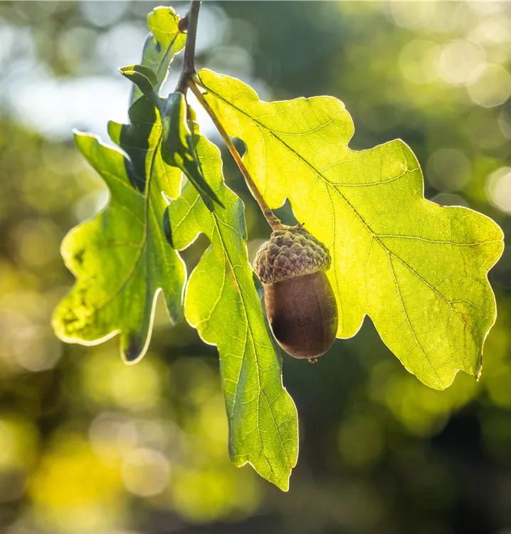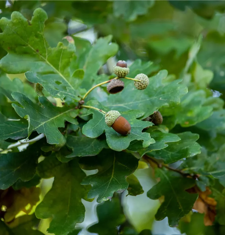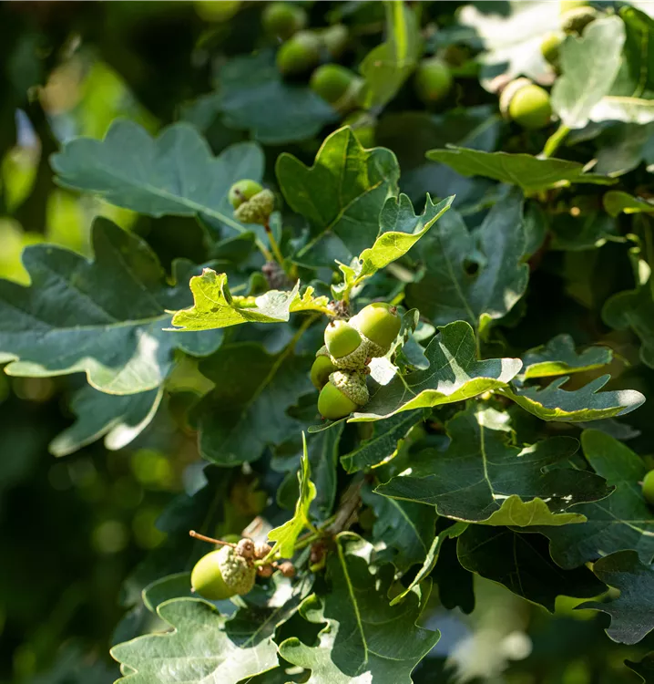 Besonders dekorativ sind die hellgrünen Früchte von Quercus robur. Diese erscheinen ab September und sind klein.