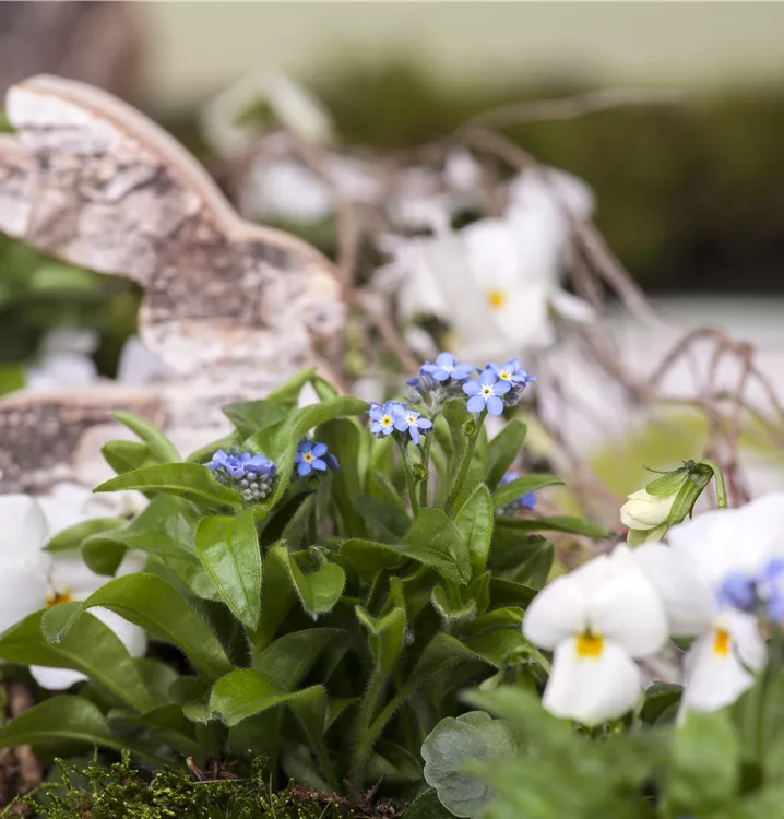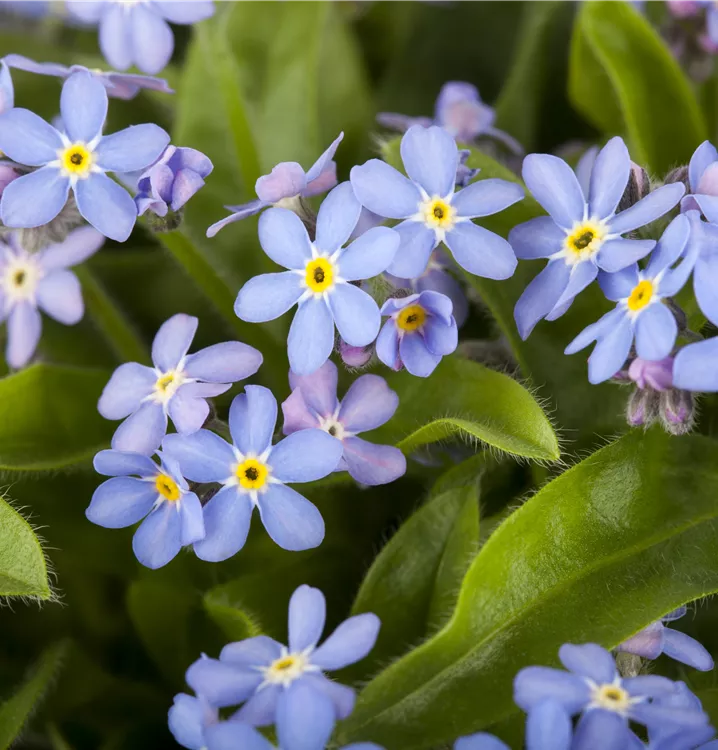 Das Wald-Vergissmeinnicht (Myosotis sylvatica) ist eine beliebte Pflanze für den Balkon, die während der gesamten Saison unzählige blaue, weiße oder rosafarbene Blüten bildet. Ein sonniger Standort und ein durchlässiges Substrat werden bevorzugt.
