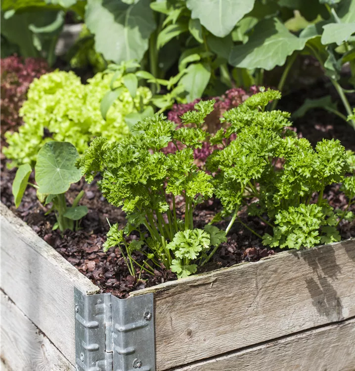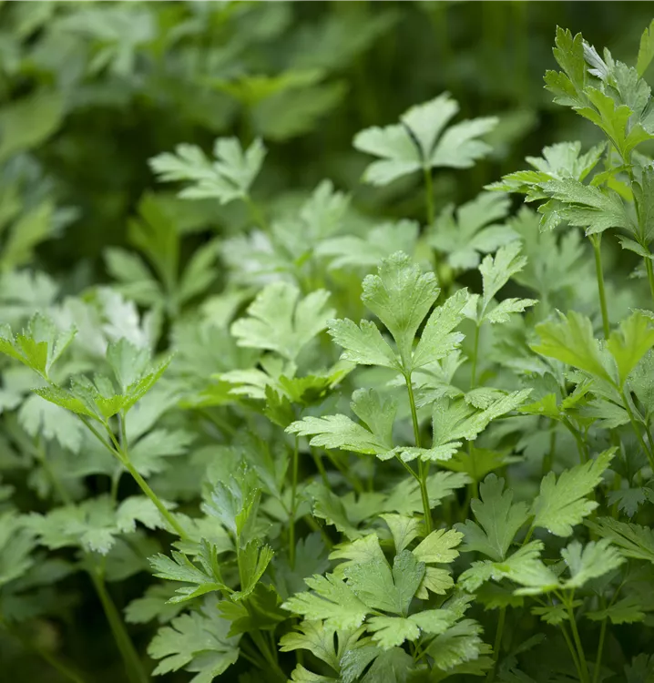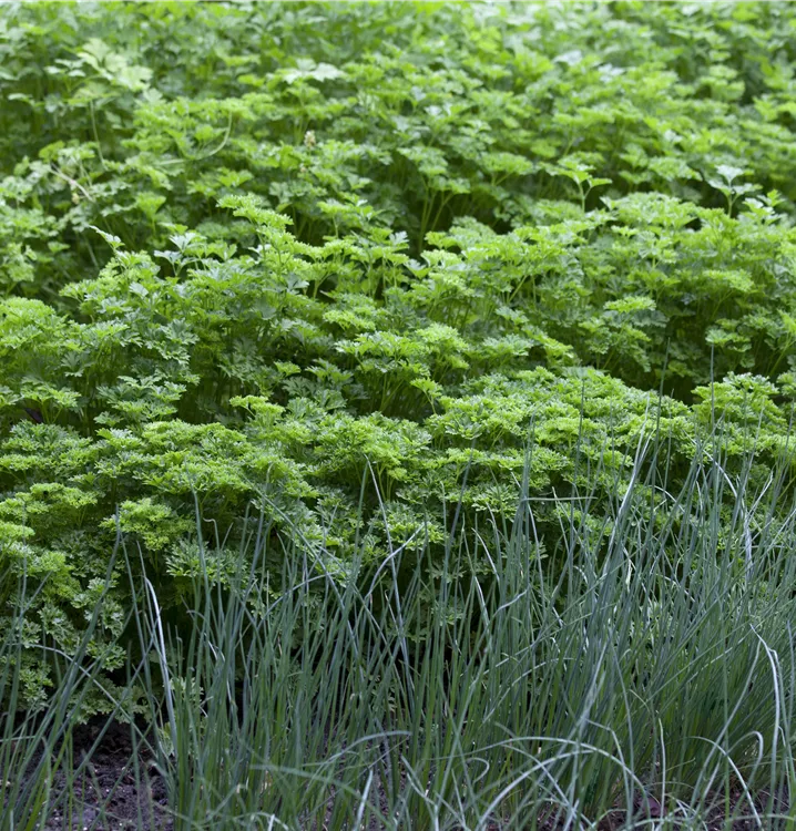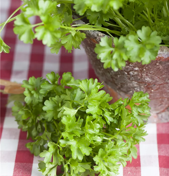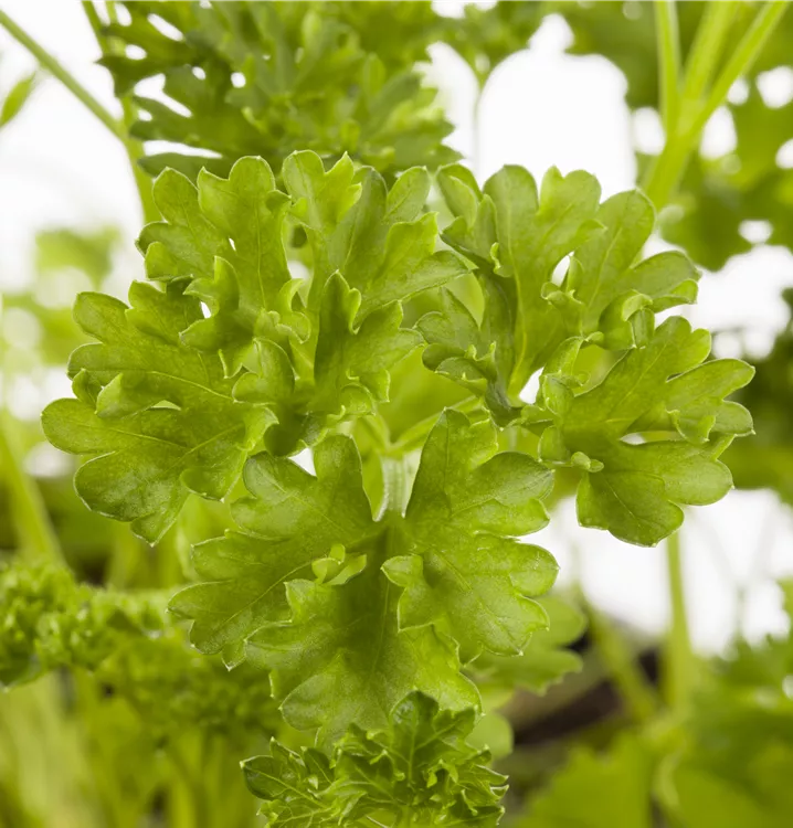 Die Krause Petersilie (Petroselinum crispum) ist eine Kräuterpflanze mit einem aromatischen Geschmack. Ihre dunkelgrünen Blätter sind gefiedert und gewellt. Für das optimale Wachstum der Krause Petersilie werden ein sonniger Standort und durchlässiger, nährstoffreicher Boden benötigt.