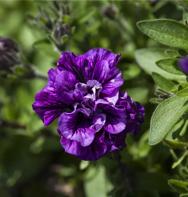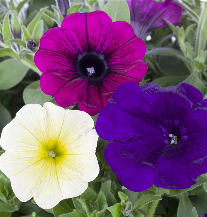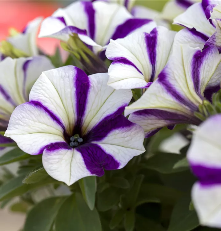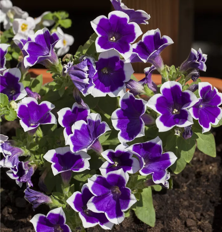 Die Petunie (Petunia) ist eine beliebte Pflanze für den Balkon, die während der gesamten Saison unzählige bunte Blüten bildet. Die mittelgrünen Blätter sind eiförmig, lanzettlich. Ein sonniger Standort und ein durchlässiges Substrat werden bevorzugt.