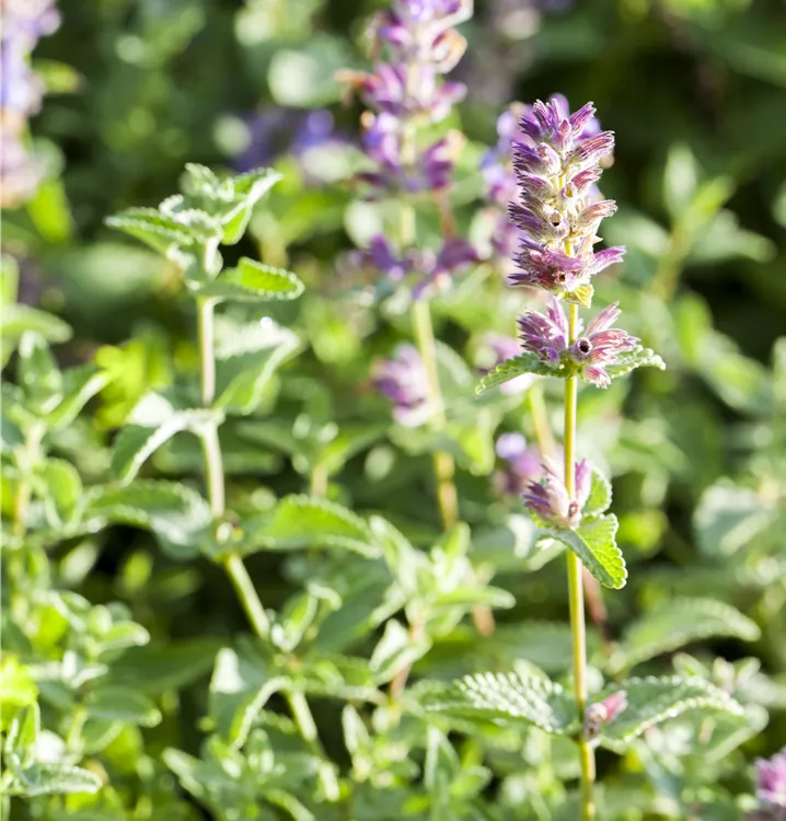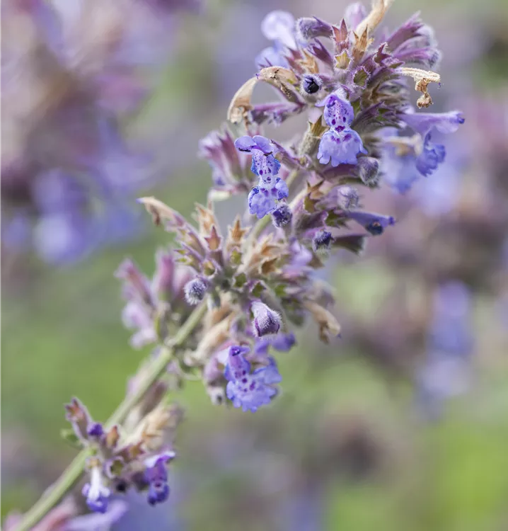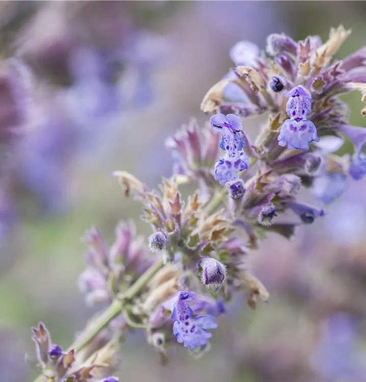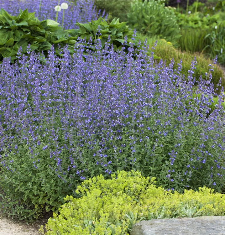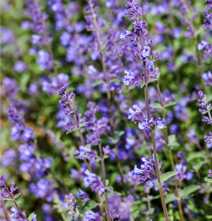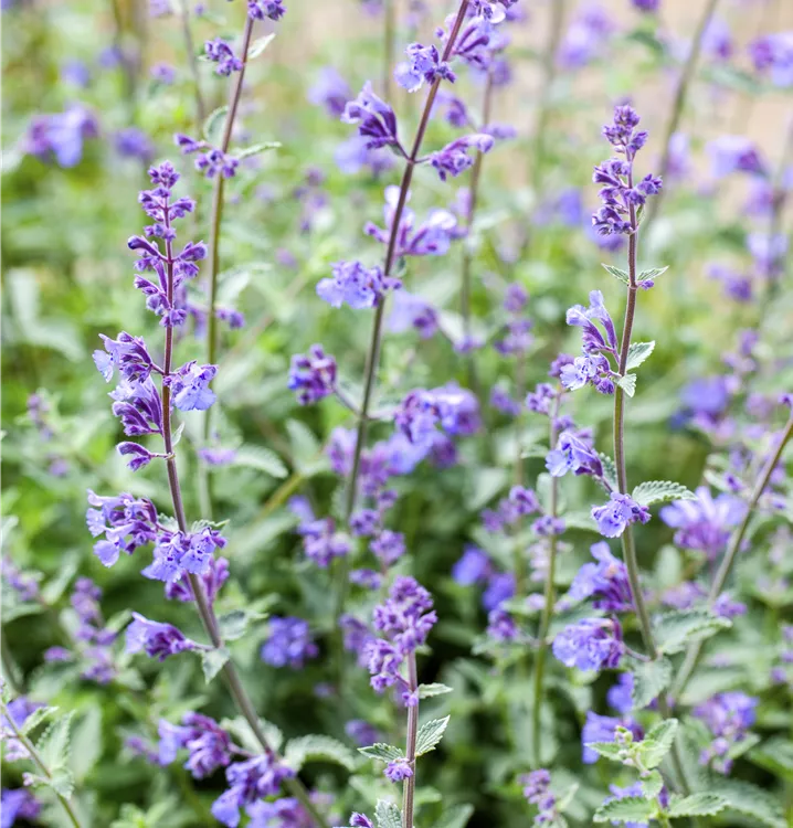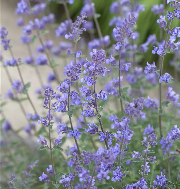 Nepeta x faassenii bildet lippenförmige, blaue Blüten ab Mai.
