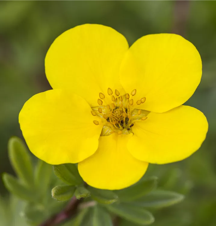 Der Gemeine Fingerstrauch (Potentilla fruticosa) ist ein buschiger, breiter Kleinstrauch, der gelbe, schalenförmige Blüten hervorbringt. Sie erscheinen von Juni bis Oktober. Zudem trägt der Gemeine Fingerstrauch, gefingerte, dunkelgrüne Blätter. An einem sonnigen bis halbschattigen Standort mit durchlässigem, nährstoffreichem, schwachsaurem Boden erreicht er gewöhnlich eine Höhe von ca. 1,5 m und wird ca. 1,5 m breit.