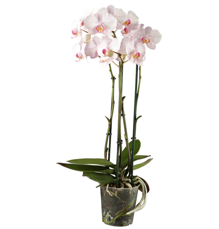 Phalaenopsis bringt von Januar bis Dezember dekorative, lippenförmige, in Rispen angeordnete, weiße, rosafarbene, hellgelbe, pinke oder dunkelrote Blüten hervor. .