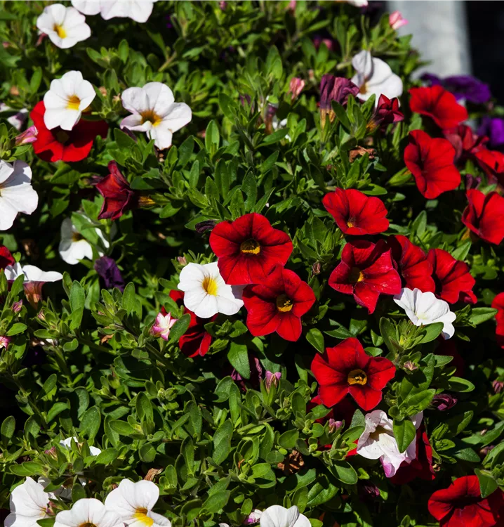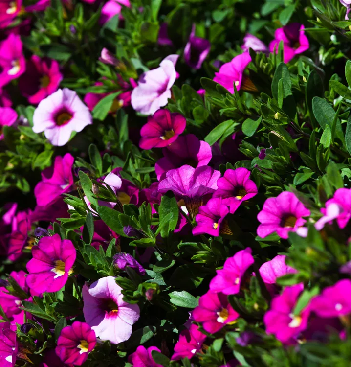Das Zauberglöckchen (Calibrachoa) ist eine beliebte, pflegeleichte Pflanze für den Balkon, die während der gesamten Saison unzählige bunte Blüten bildet. Ein sonniger bis halbschattiger Standort und ein durchlässiges Substrat werden bevorzugt. Mit seinem buschigen und überhängenden Wuchs passt das Zauberglöckchen besonders gut in Blumenampeln und hängende Pflanzkörbe.