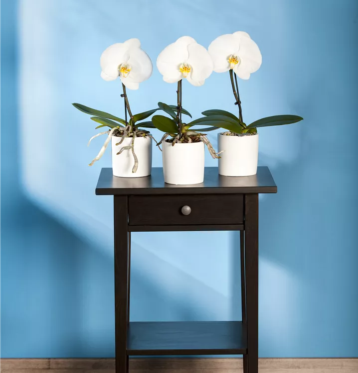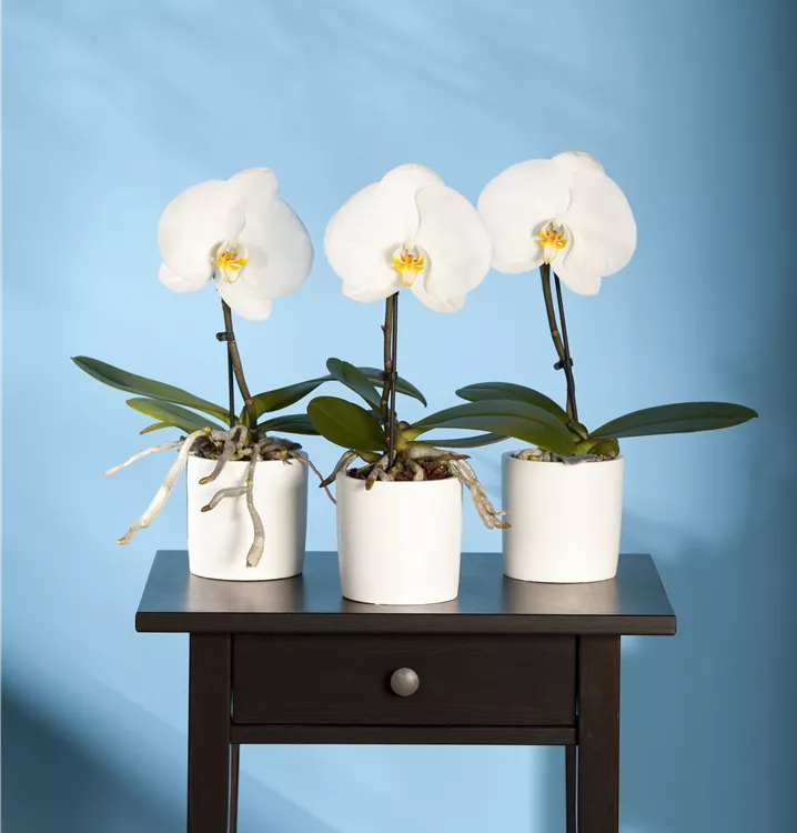 Die Schmetterlingsorchidee 'Singolo'® (Phalaenopsis) ist eine schöne, in weiß, rosa, hellgelb, pink oder dunkelrot blühende Orchidee. Mit ihrem aufrechten und kompakten Wuchs wird sie bis zu 40 cm hoch und 50 cm breit. Für das optimale Wachstum sorgen ein heller Standort sowie eine möglichst durchlässige und lockere Erde.