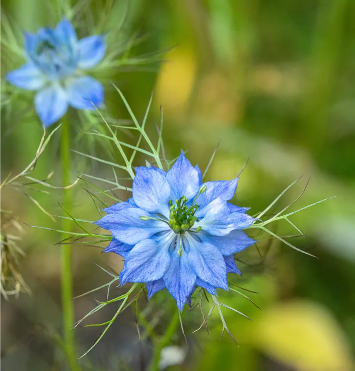Die Blätter der Jungfer im Grünen sind mittelgrün, tief geschlitzt.