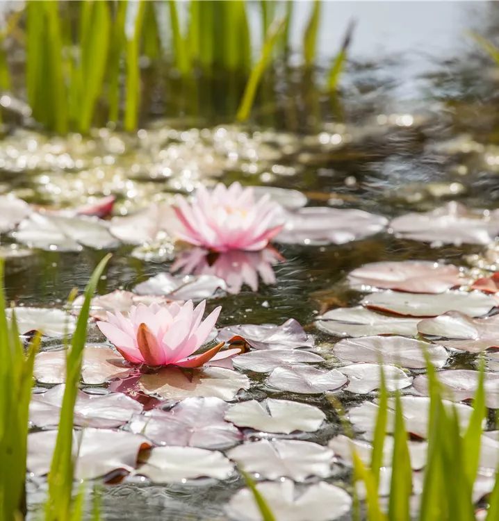 Seerosen lieben ruhige Gewässer, daher sollte in einem Seerosenteich auf einen Springbrunnen und andere "Wellenerzeuger" verzichtet werden.