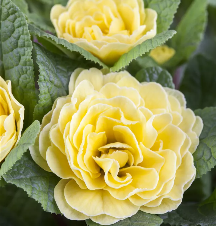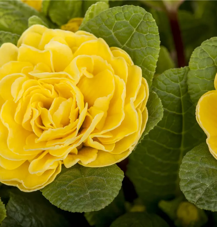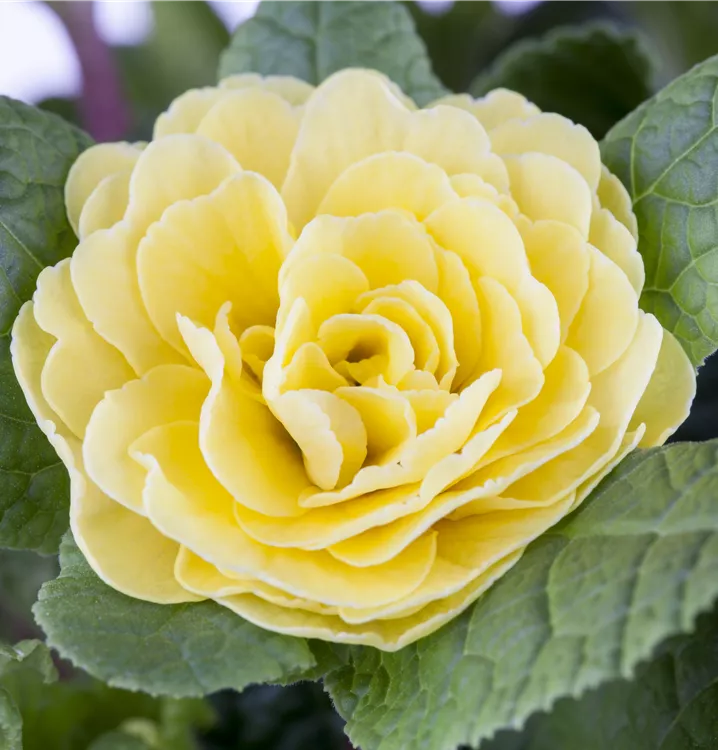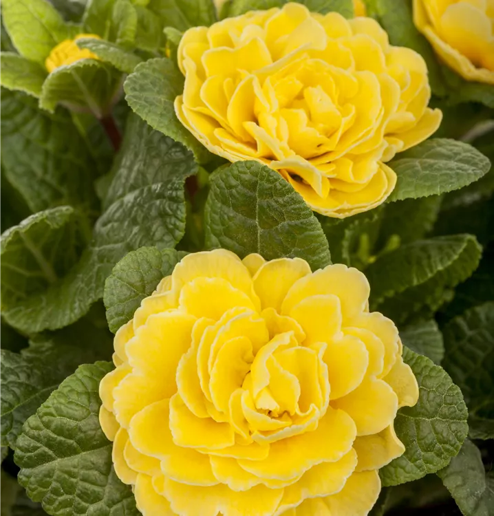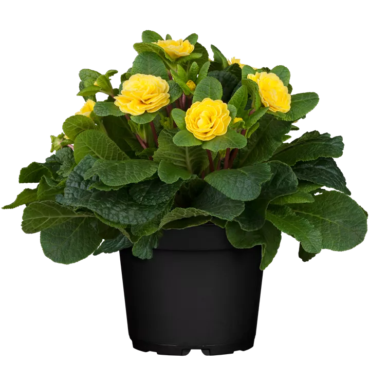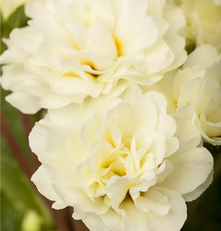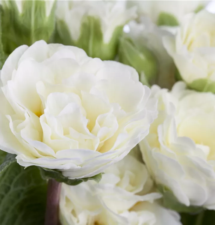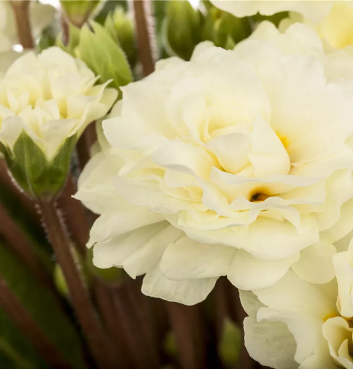 Primula vulgaris BELARINA bildet gefüllte, weiße, rosafarbene, rote Blüten ab März. Diese werden etwa 2,5 - 3,5 cm groß.
