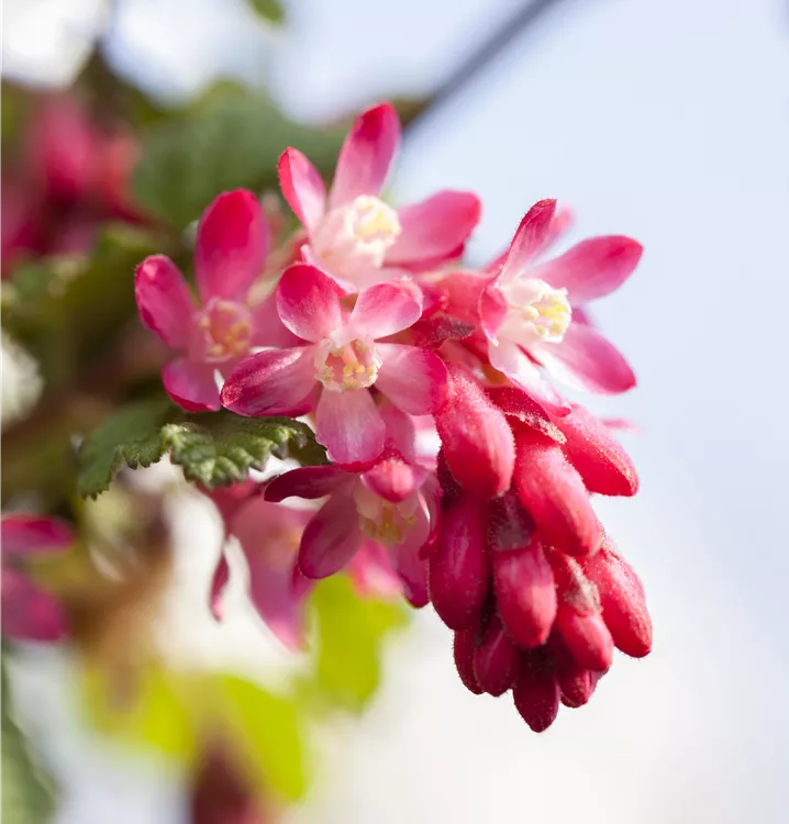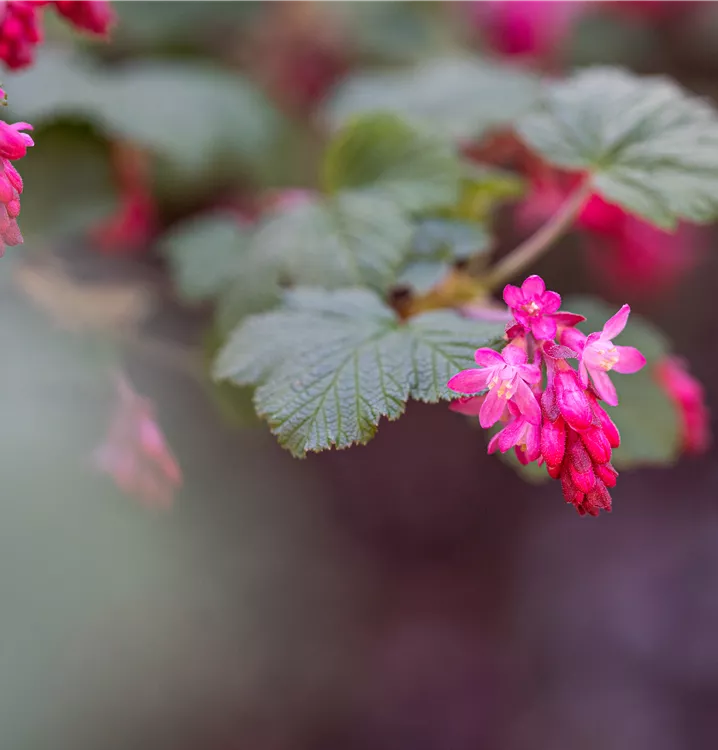 Die Blutjohannisbeere (Ribes sanguineum) ist ein aufrechter Großstrauch, der rosarote Blüten hervorbringt. Sie erscheinen von April bis Mai. Zudem trägt die Blutjohannisbeere, mittelgrüne Blätter. An einem sonnigen bis halbschattigen Standort mit durchlässigem Boden erreicht sie gewöhnlich eine Höhe von ca. 4 m und wird ca. 3 m breit.