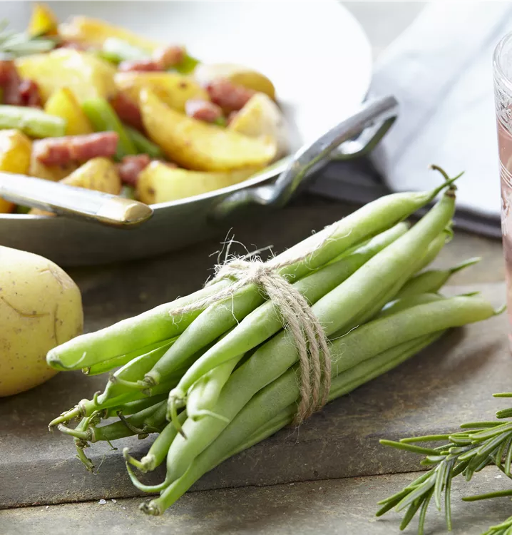 Die Gartenbohne (Phaseolus vulgaris) bildet Hülsenfrüchte, die aromatisch schmecken und bereits ab Juli geerntet werden können. Für das optimale Wachstum der Gartenbohne werden ein sonniger Standort und durchlässiger, nährstoffreicher Boden benötigt.