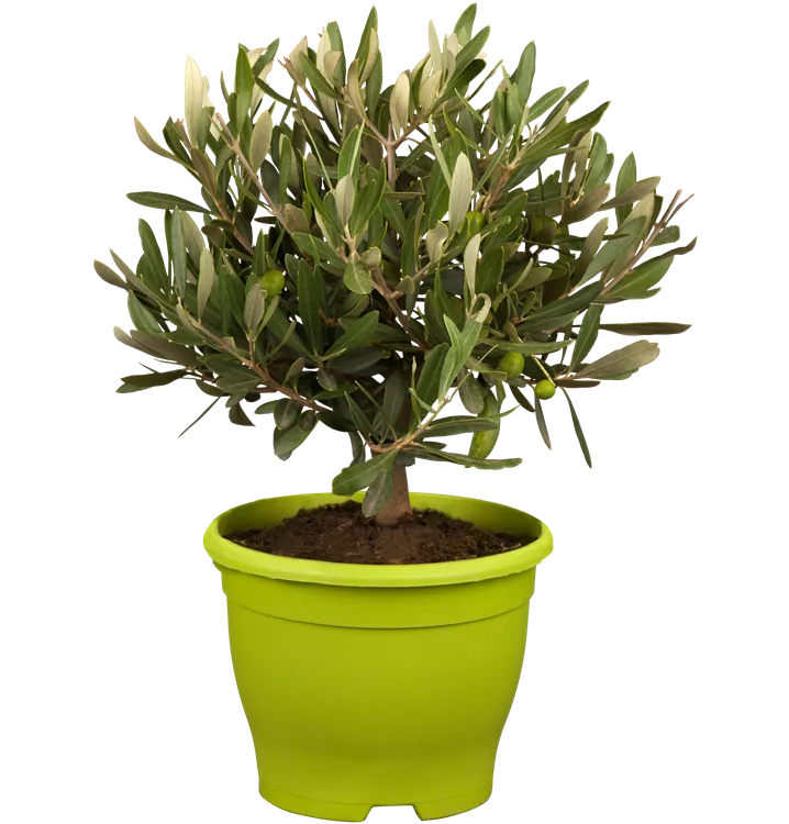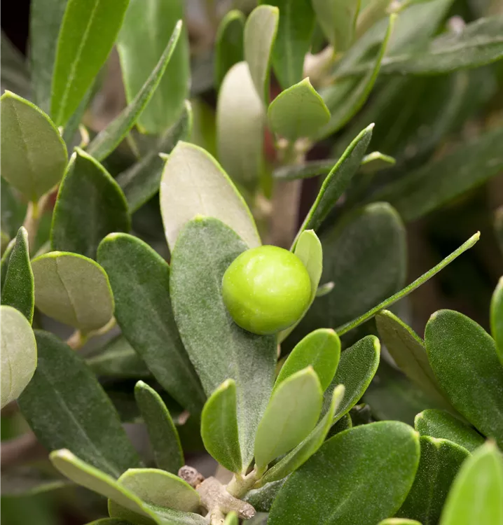 Der Olivenbaum (Olea europaea) ist eine sehr beliebte, immergrüne Kübelpflanze, deren grünen bis schwarzen Früchte einen aromatischen Geschmack haben. Die grau-grünen Blätter sind lanzettlich. Der Standort sollte möglichst sonnig sein. Eine durchlässige Erde ist dabei ideal. Bei günstigen Bedingungen erreicht der Olivenbaum eine Höhe von ca. 2 m und wird bis zu 1,5 m breit.