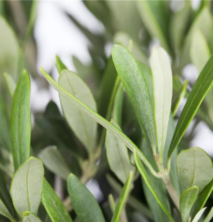 Die immergrünen Blätter des Olivenbaums sind grau-grün, lanzettlich.