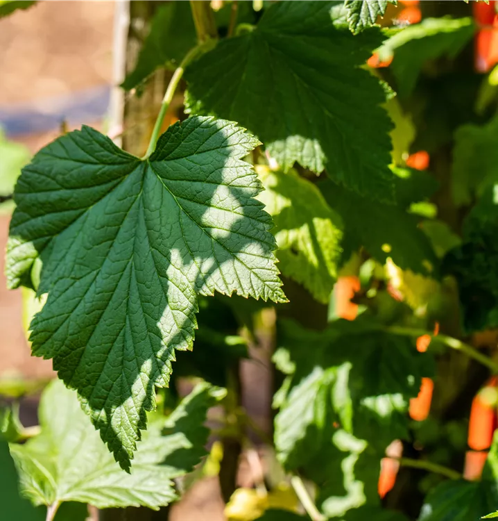 Die sommergrünen Blätter der Josta sind mittelgrün.