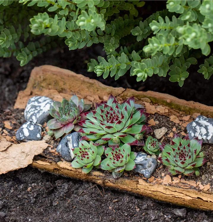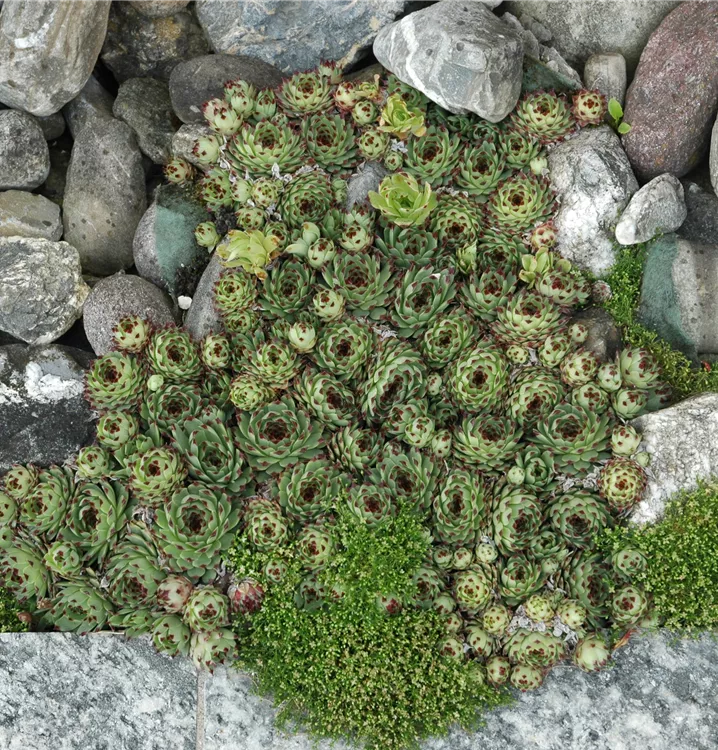 Die Dach-Hauswurz setzt schöne Akzente gemeinsam mit: